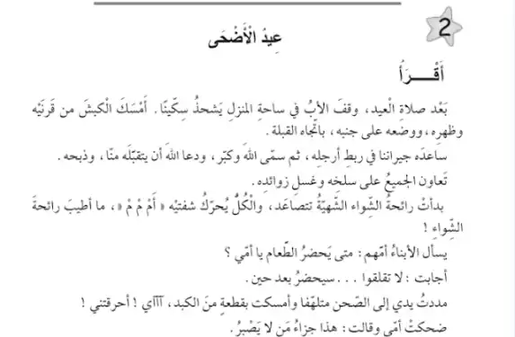 نموذج تعبير كتابي عَنْ عيد الأضحى للسنة الأُوْلَى متوسط