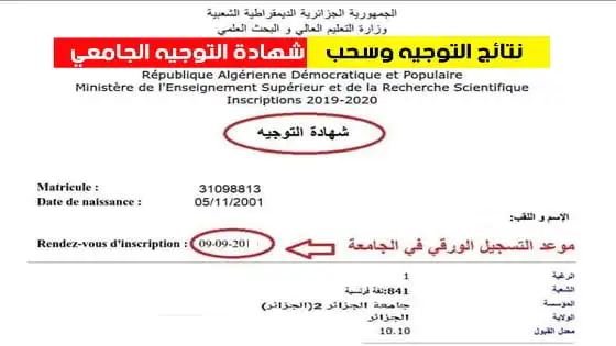 شهادة التوجيه الجامعي 2026 orientation.esi.dz