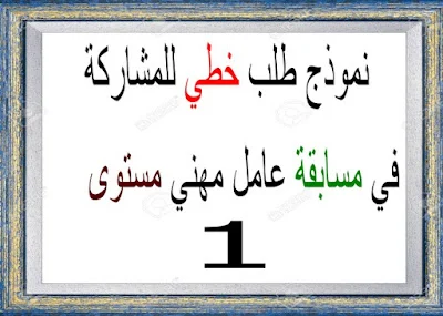 لي الشرف العظيم أن أتقدم الى سيادتكم المحترمة بطلبي هذا و المتمثل في طلب المشاركة في المسابقة على أساس الاختبار للالتحاق بوظيفة عامل مهني من المستوى الأول و أحيطكم علما أنني أتمتع بصحة جيدة تتماشى مع الوظيفة المطلوبة بالاضافة أنه لدي مستوى …….(ذكر المستوى الدراسي) .