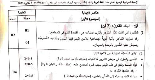 حلول مواضيع شهادة البكالوريا 2023 BAC – الإجابة النموذجية و تصحيح موضوع اختبار مادة اللغة العربية وآدابها شعبة علوم تجريبية، رياضيات، تقني رياضي،تسيير واقتصاد بكالوريا 2023