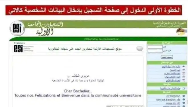 – الموقع الرسمية للتسجيلات الجامعية : www.orientation-esi.dz