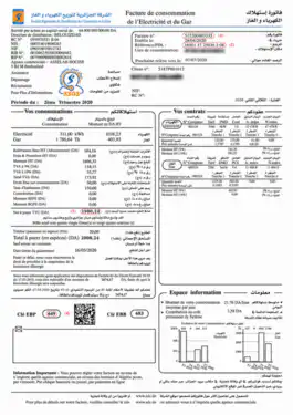 - في الخانة الأولى N° Facture نقوم بكتابة رقـم فاتورة الكهرباء المتكون من 14 رقـم تجدونه داخل فاتورة الكهرباء.