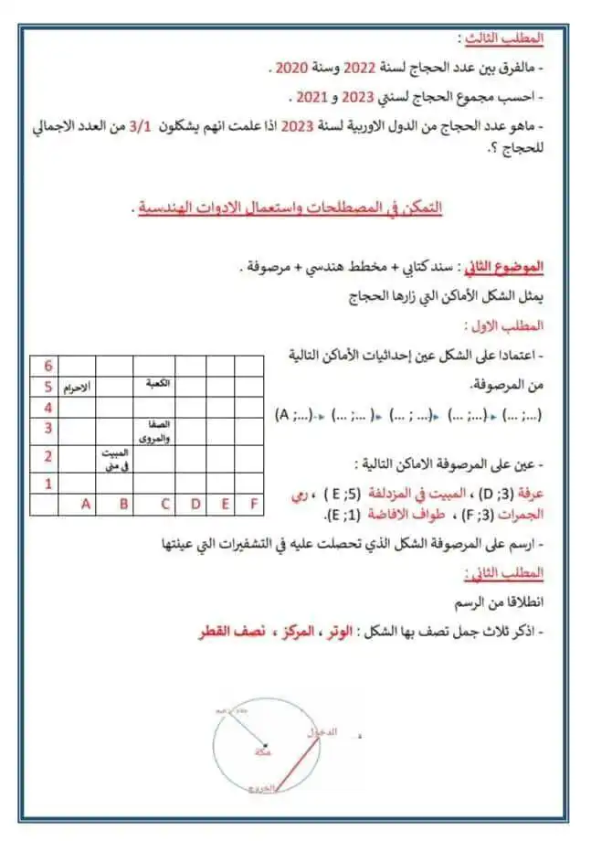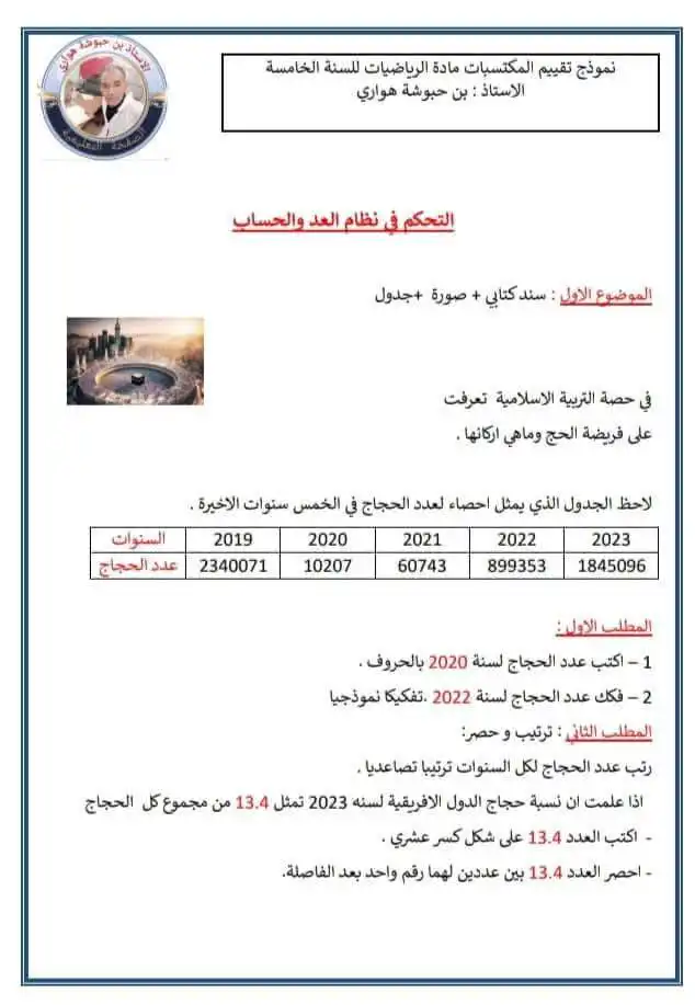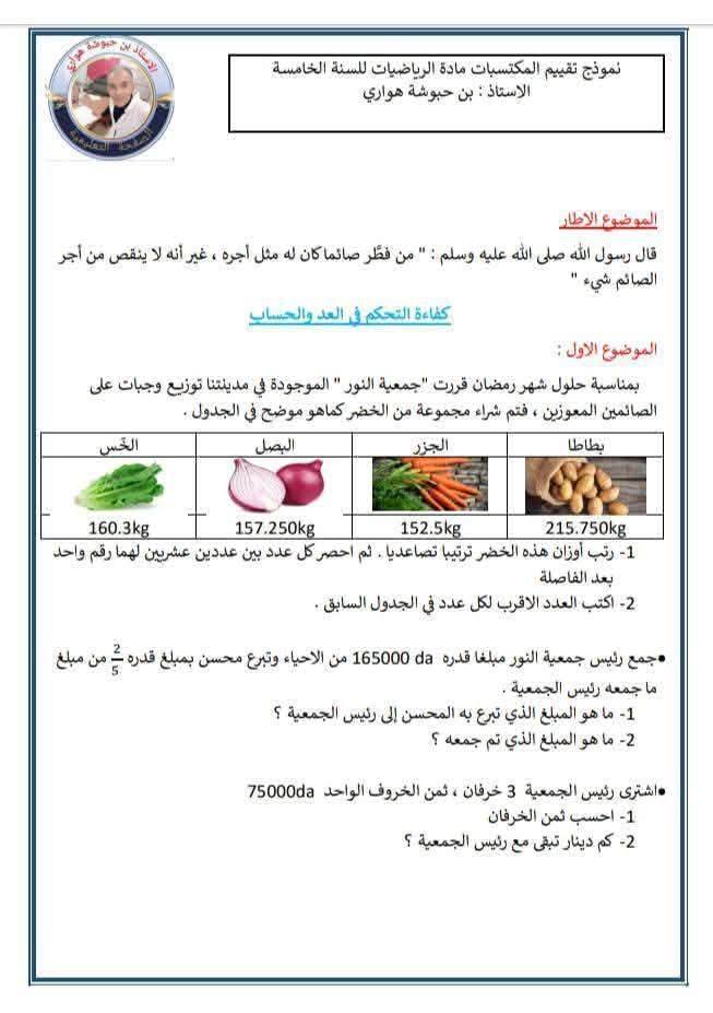 تقييم المكتسبات في الرياضيات للسنة الخامسة 2026
