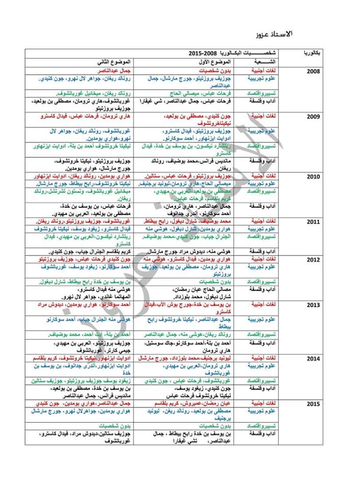 كل الشخصيات التي وردت في البكالوريات السابقة ( 2008-2015) جميع الشعب