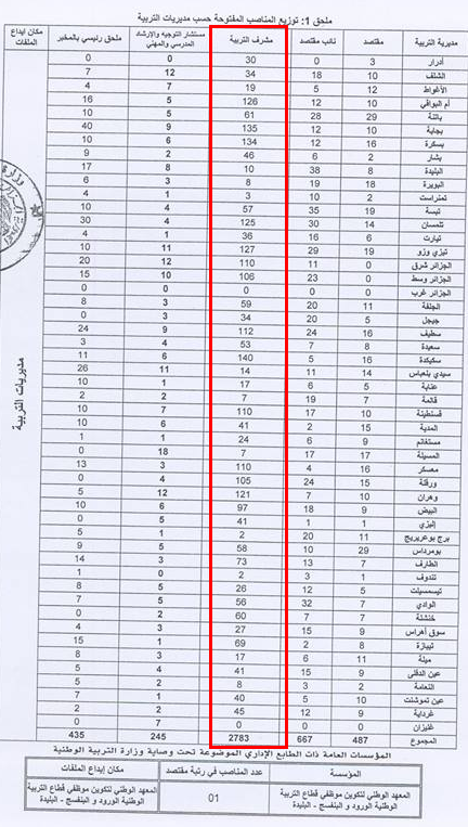 واليكم توزيع مناصب مشرفي التربية حسب الولايات :