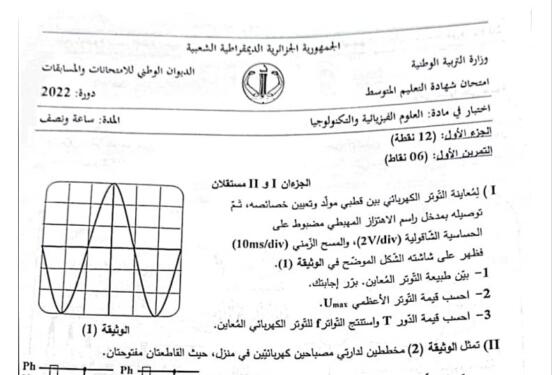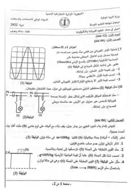 موضوع الفيزياء شهادة التعليم المتوسط 2022موضوع امتحان شهادة التعليم المتوسط 2022 BEM – موضوع اختبار مادة العلوم الفيزيائية لشهادة التعليم المتوسط 2022: