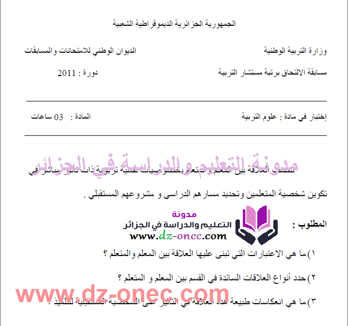 موضوع مقترح لاختبار علوم التربية مسابقة مشرف التربية 2017