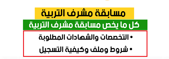 تنبيه : بعد التسجيل في مسابقة مشرف تربوي سيتم دراسة ملفك من جديد ، وعملية التسجيل لا تعني بأن الملف قبول ، بل سيتم الرد عليك خلال الرزنامة التي يتم اعتمادها.
