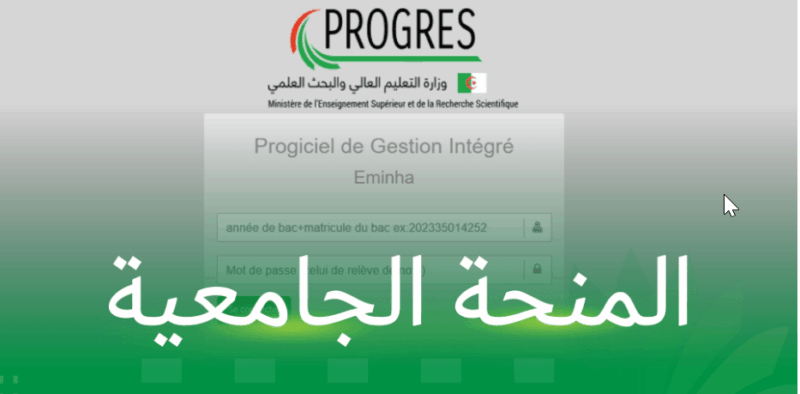 موقع التسجيل في المنحة الجامعية progres.mesrs.dz/eminha: