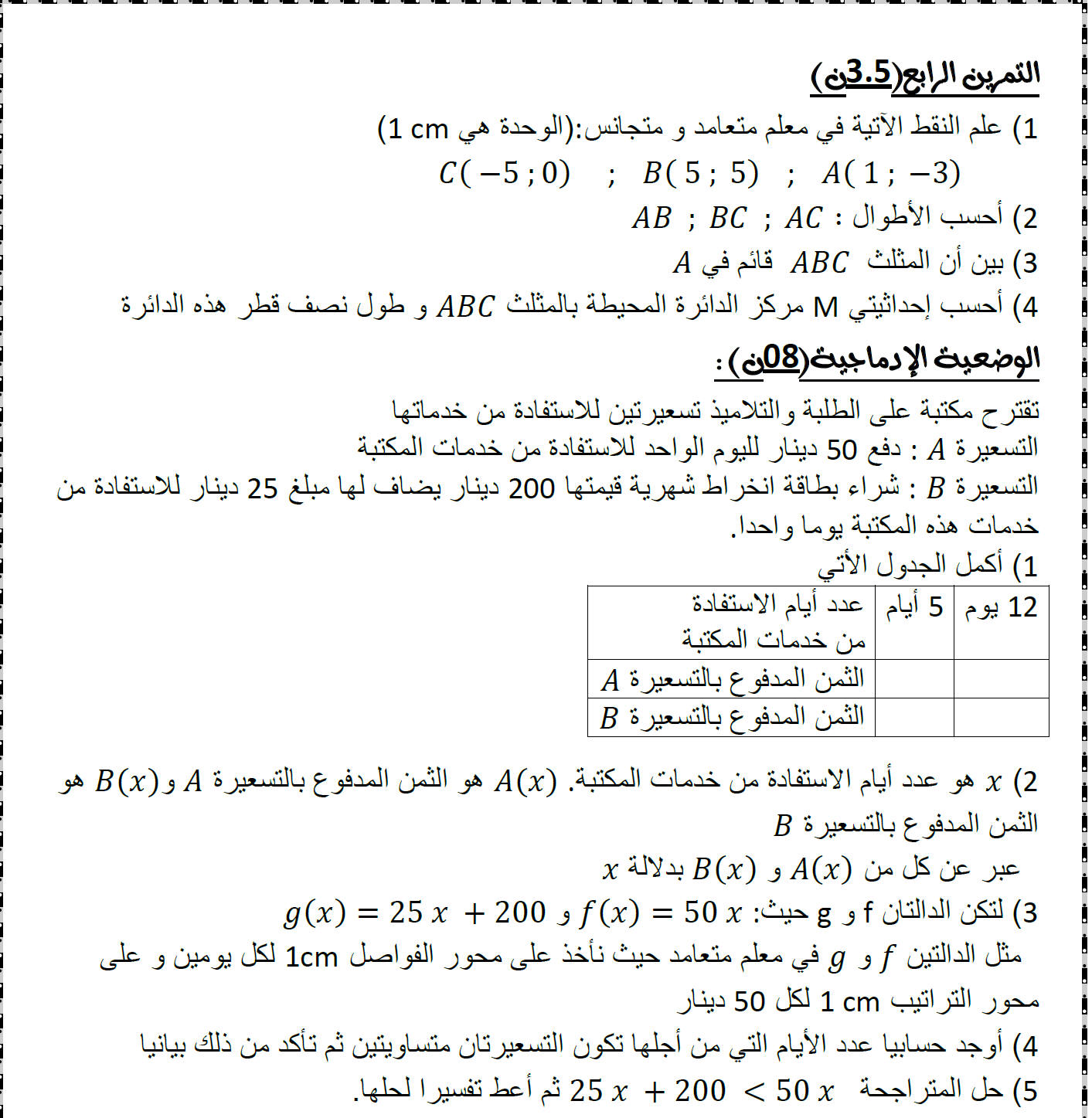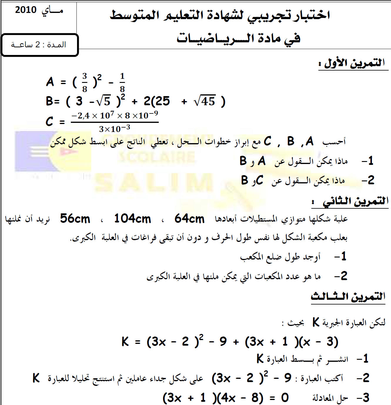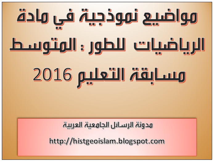 مواضيع نموذجية في مادة الرياضيات للطور : المتوسط مسابقة التعليم 2016