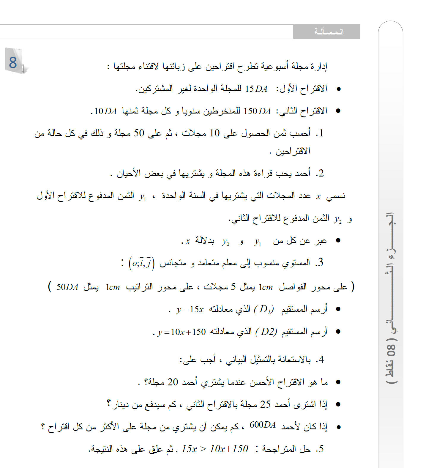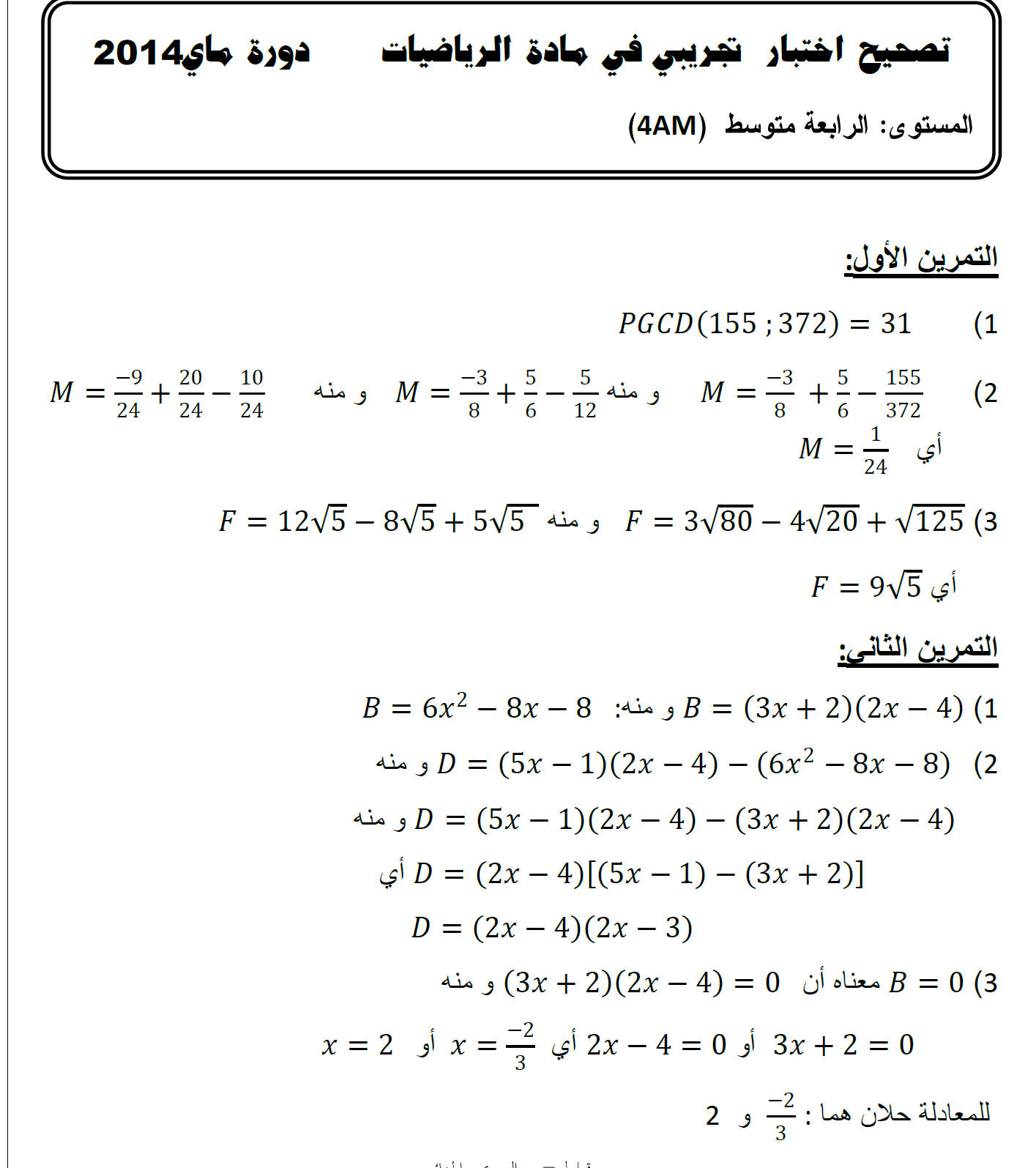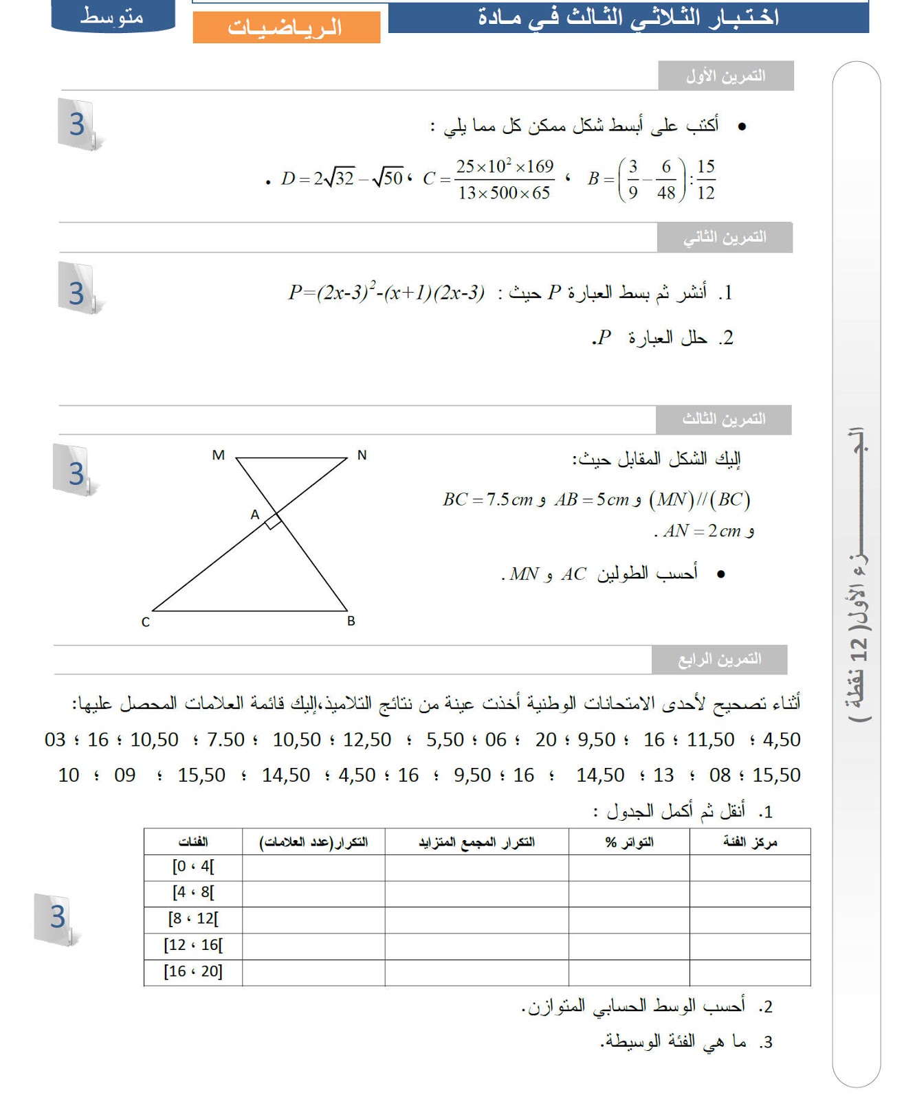 مواضيع نموذجية في مادة الرياضيات للطور : المتوسط مسابقة التعليم 2016