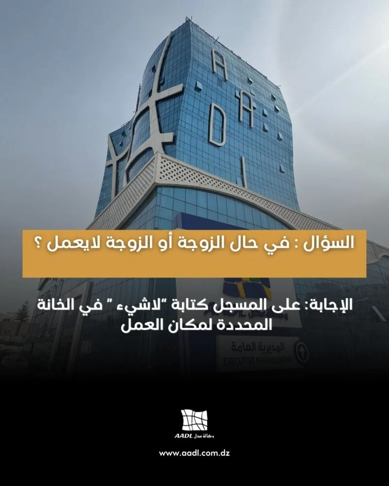 في حال الزوجة او الزوج لا يعمل على المسجل كتابة لا شيئ في الخانة المحدة لمكان العمل
