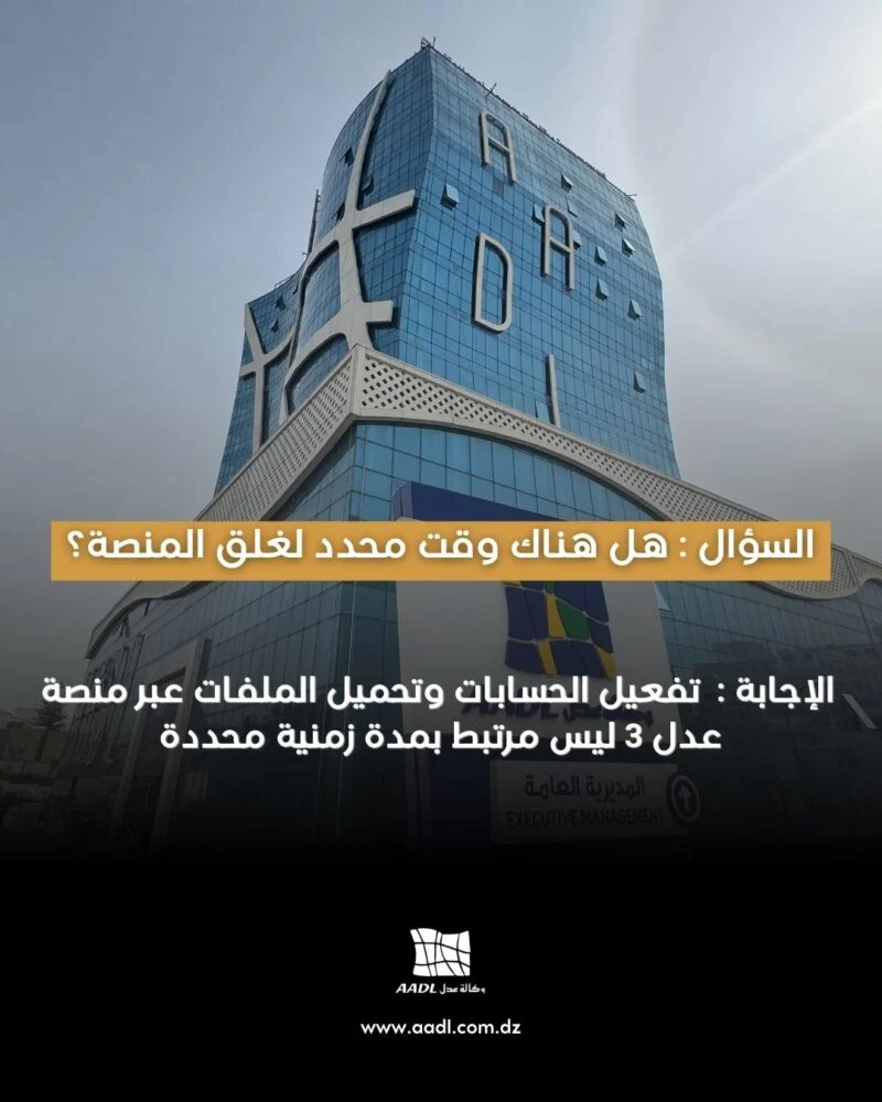 هل هناك وقت محدد لغلق المنصة حسب وكالة عدل تفعيل الحسابات وتحميل الملفات عر منصةعدل3 ليس مرتبط بمدة زمنية محددة