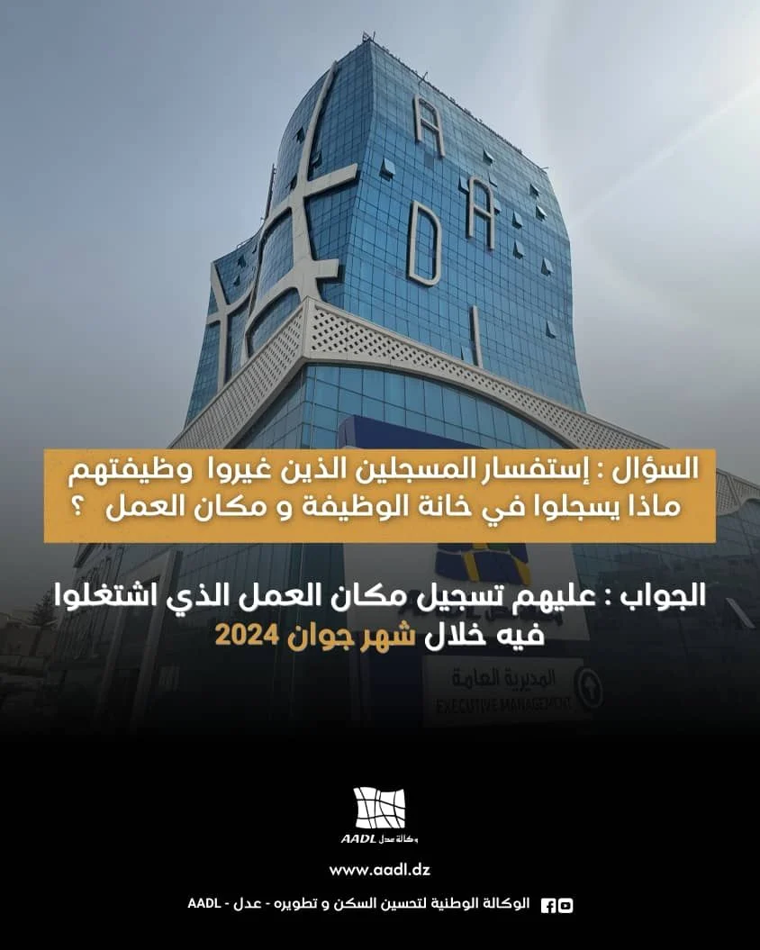 المسجلين الذين غيرو وظيفهم ماذا يسجلو في خانة الوظيفة ومكان العمل الجواب: عليهم تسجيل مكان العمل الذي اشتغلو فيه خلال شهر جوان 2024