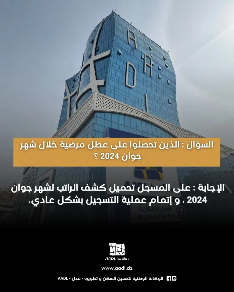 الذين تحصلو على عطل مرضية في شهر جوان على المسجل تحميل كشف الراتب لشهر جوان 2024 واتمام عملية التسجيل بشكل عادي