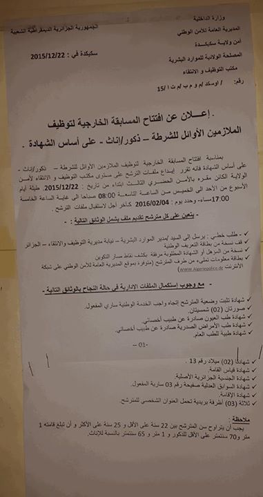 إعلان توظيف : رسميا فتح مسابقة الشرطة ديسمبر2015