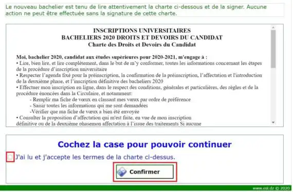 2) Lire attentivement la Charte des droits et devoirs du candidat que tu dois signer.