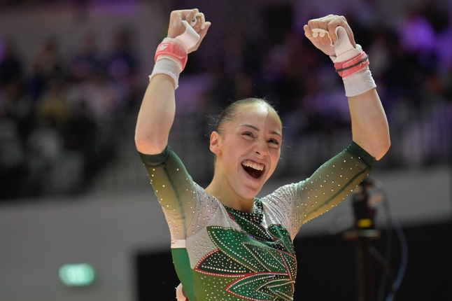 وتوجت الجمبازية الجزائرية أمس الجمعة بالميدالية الذهبية واللقب العالمي لمسابقة العارضتين غير متوازنتين، لتصبح أول جمبازية إفريقية و عربية تنال اللقب العالمي ضمن منافسة عالمية للجمباز الفني.